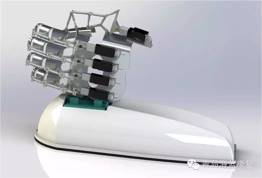 神經(jīng)康復(fù)機(jī)械手作為智能外骨骼康復(fù)訓(xùn)練系統(tǒng)的系列產(chǎn)品之一,填補(bǔ)了國(guó)內(nèi)主被動(dòng)手功能訓(xùn)練的空白。該系統(tǒng)通過(guò)采集患者大腦運(yùn)動(dòng)意識(shí)驅(qū)動(dòng)患側(cè)肢體的sEMG生物電信號(hào),控制機(jī)械手上各個(gè)關(guān)節(jié)的機(jī)械結(jié)構(gòu)運(yùn)動(dòng),使患者實(shí)現(xiàn)與機(jī)械手共同運(yùn)動(dòng)的康復(fù)訓(xùn)練。